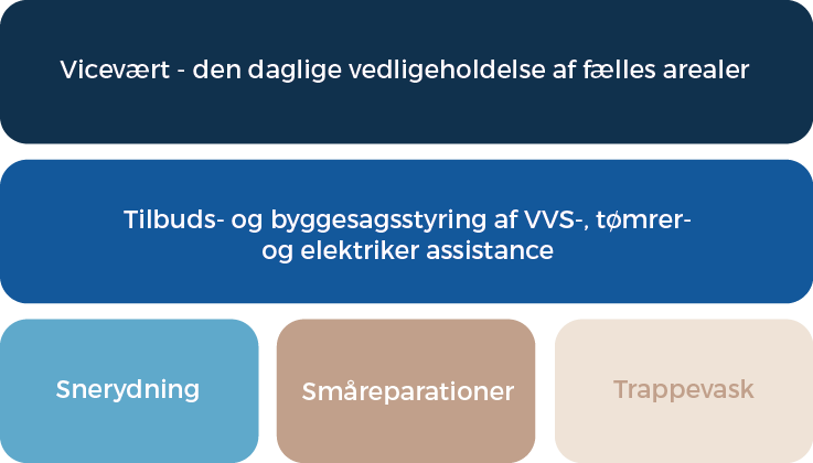 I nedenstående er anført de hovedområder som vi tilbyder som en del af vores ejendomsservice:
